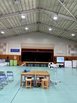 劇や合唱がメインの出し物なのですが、昨年は体育館の屋根に当たる雨音で客席まで声が届きにくかったとの反省点から今回初めて実験的に音響を入れての文化発表会でした。
